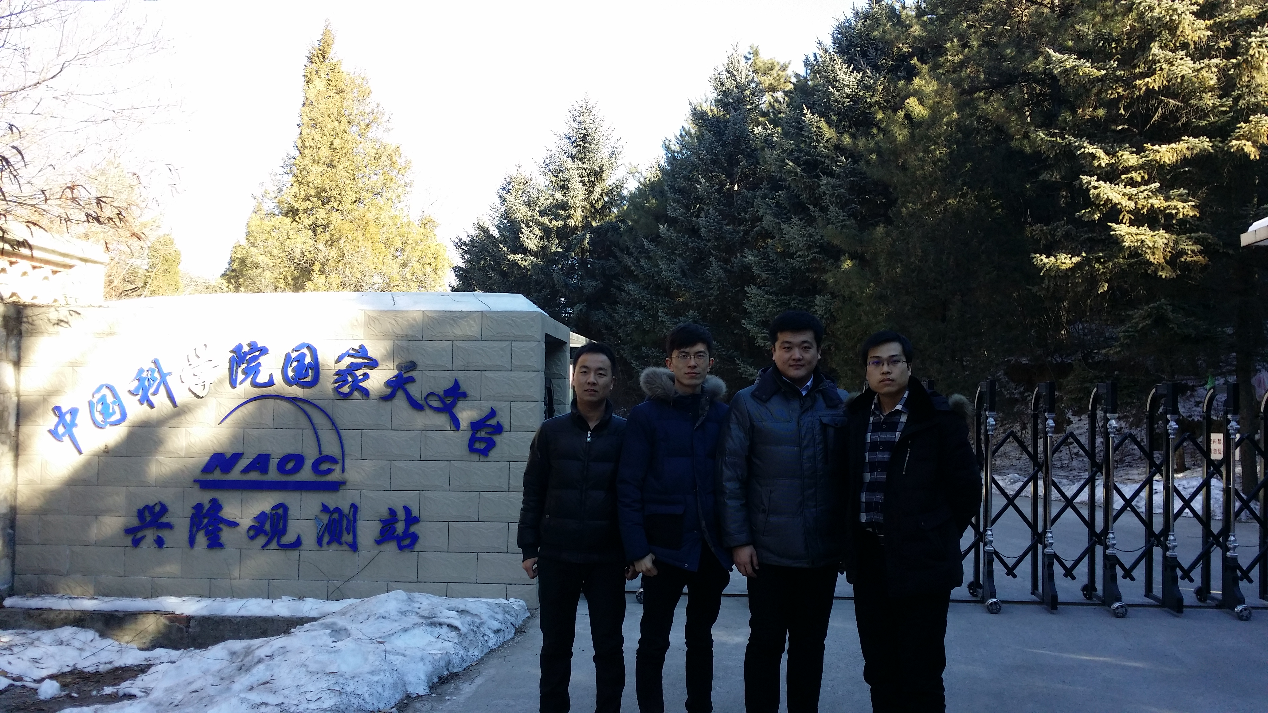 (信息学院)1月9日,应国家天文台邀请,我校可视化航天团队成员徐骞、郭阳、张登辉、温晋杰一行,与昆宇蓝程(北京)科技有限责任公司和国家相关国防科技人员一同前往国家天文台兴隆观测站进行实地考察,对天文观测综合监控及可视化平台建设进行了交流。这是可视化航天团队继去年12月在“中国·河北(廊坊)军民融合国防工业协同创新成果展示洽谈会”上与昆宇蓝程(北京)科技有限责任公司项目对接签约之后,双方进一步就我国天文观测及可视化领域合作所开展的部分内容。