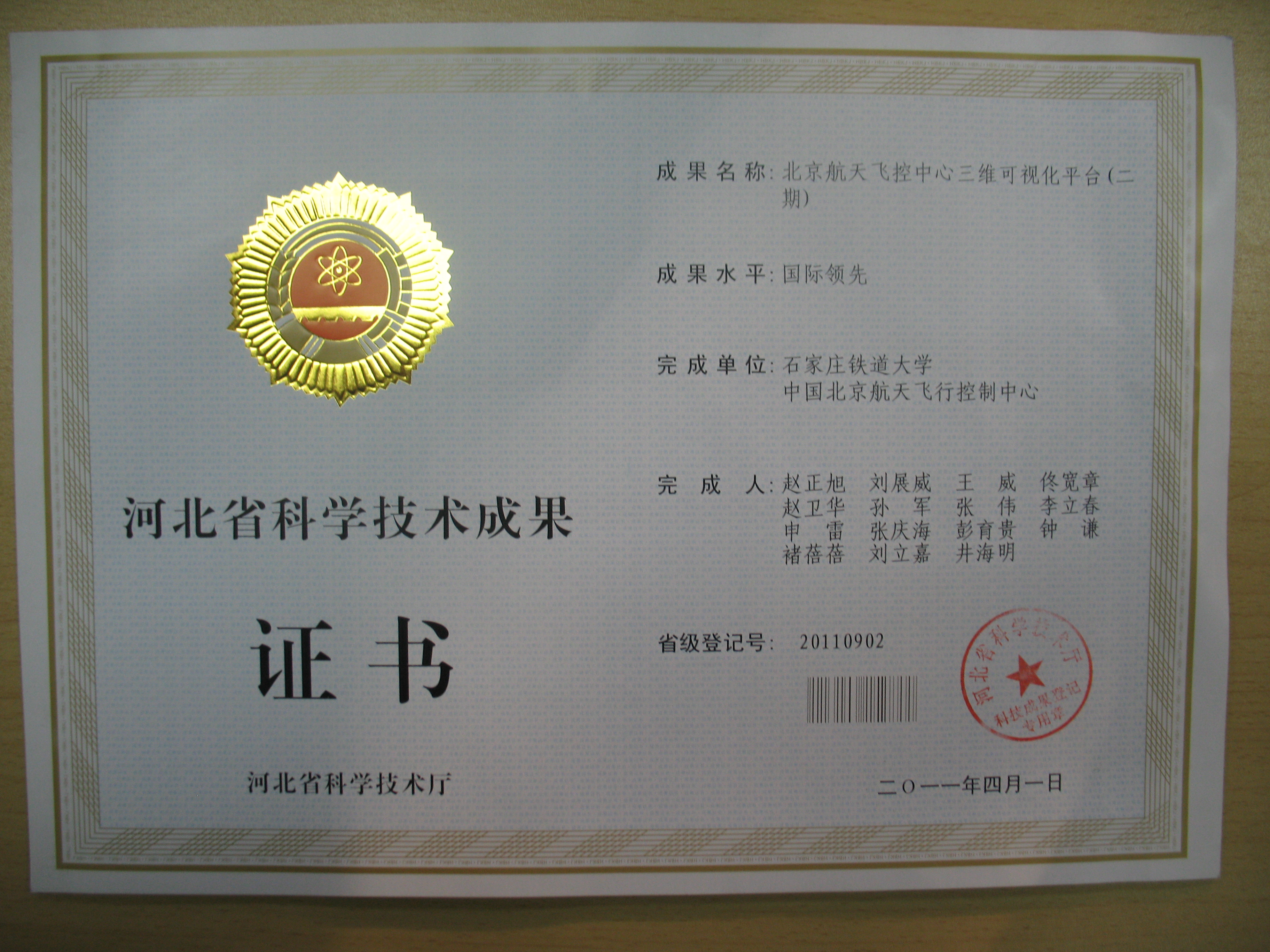 《北京航天飞控中心三维可视化平台(二期)》河北省科学技术成果证书