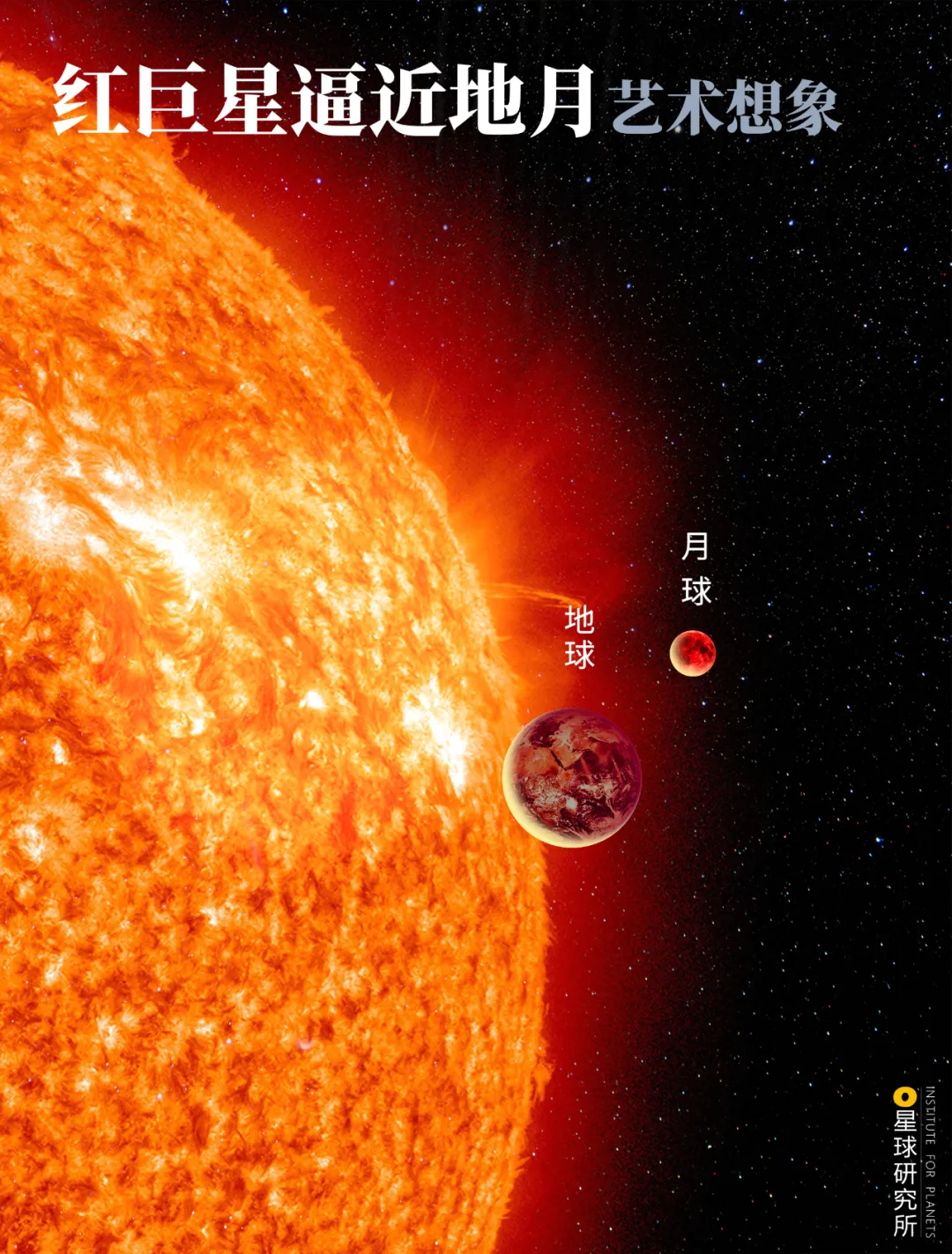 (红巨星逼近地月艺术想象,制图@张靖&林子轩&郑伯容/星球研究所)