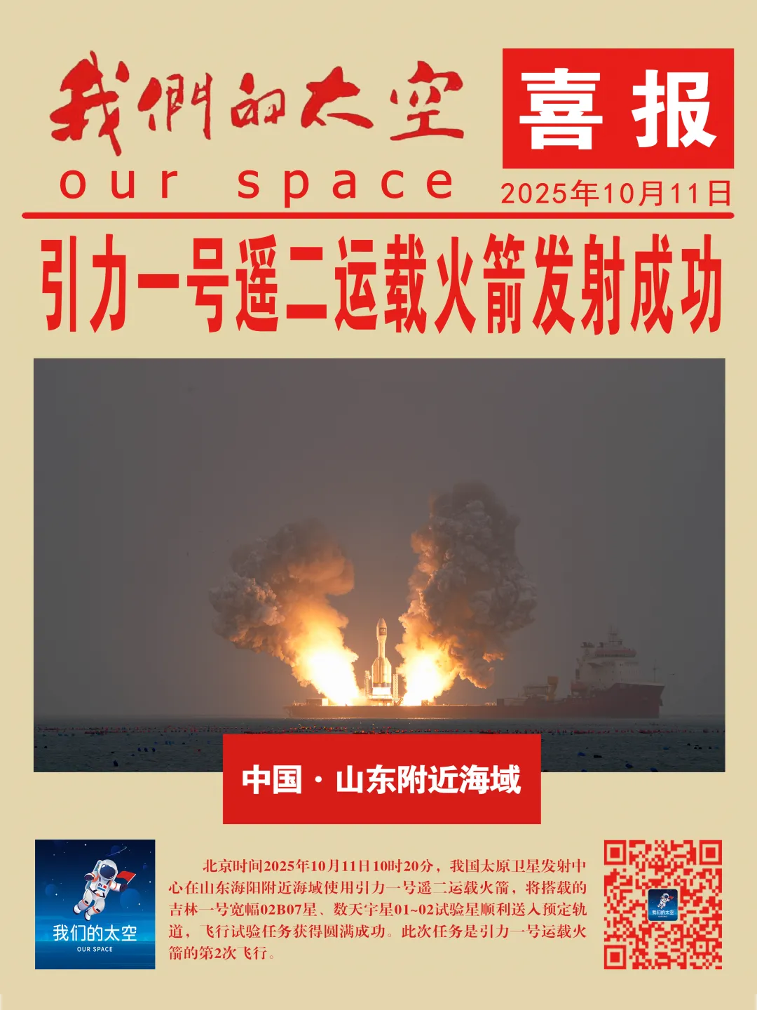 北京时间2025年10月11日10时20分,我国太原卫星发射中心在山东海阳附近海域使用引力一号遥二运载火箭,将搭载的吉林一号宽幅02B07星、数天宇星01~02试验星顺利送入预定轨道,飞行试验任务获得圆满成功。